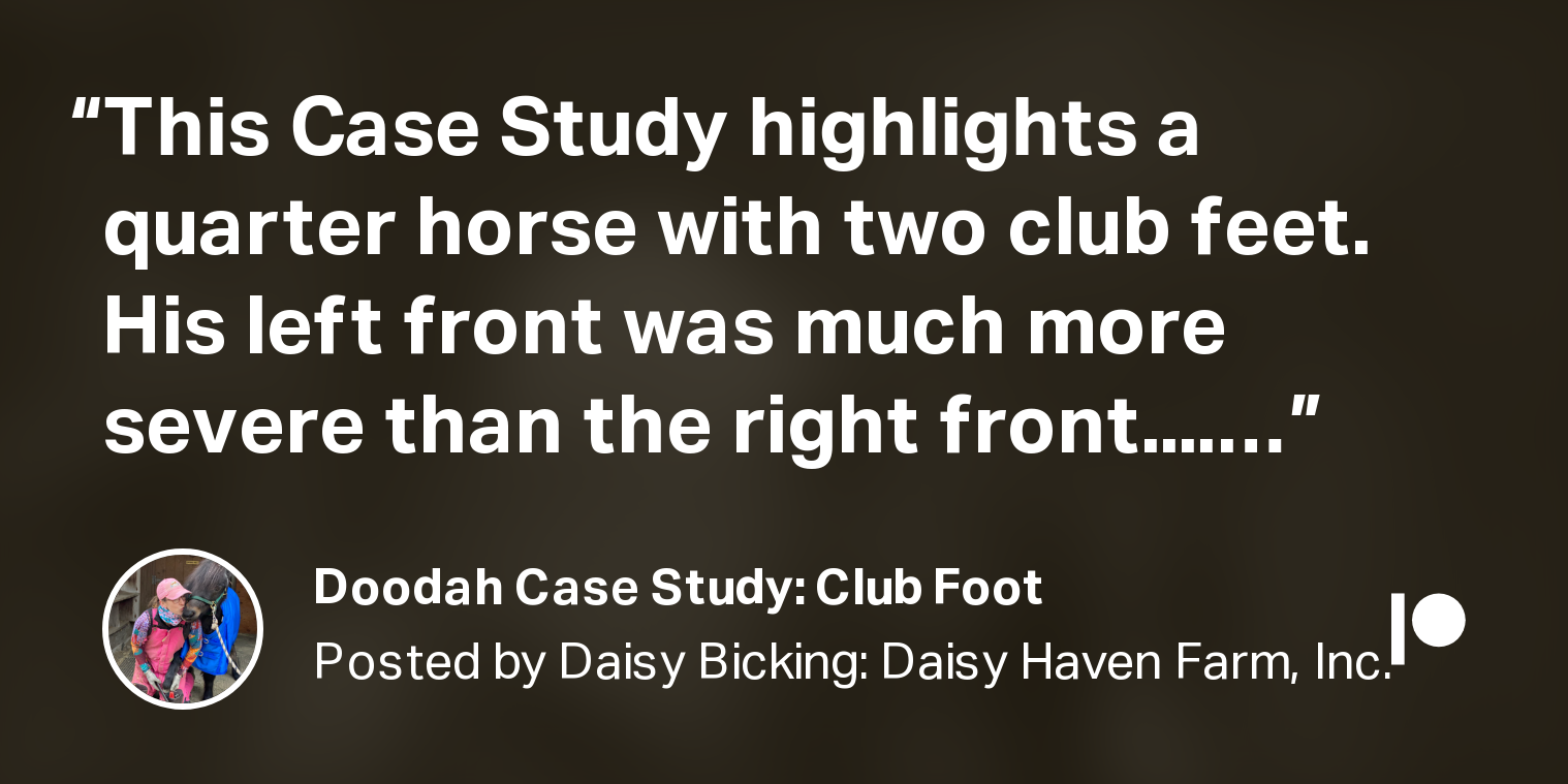 Doodah Case Study: Club Foot Posted on 7 January 2020 This Case Study highlights a quarter horse with two club feet... See the whole post on Patreon.