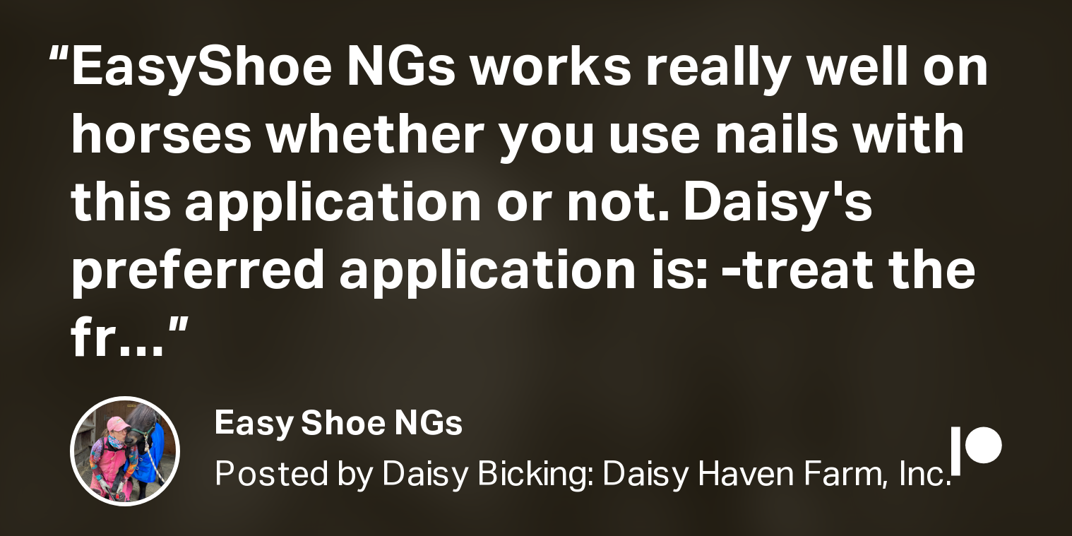 Easy Shoe NGs Posted on 21 March 2022 EasyShoe NGs works really well on horses whether you use nails with this application or not... See the whole post on Patreon.