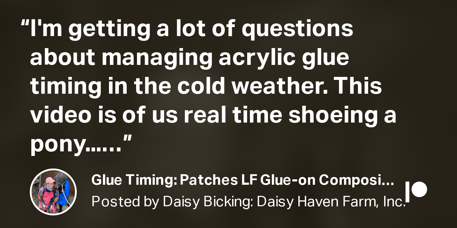 Glue Timing: Patches LF Glue-on Composite Shoe Posted on 7 February 2020 I'm getting a lot of questions about managing acrylic glue timing in the cold weather... See the whole post on Patreon.