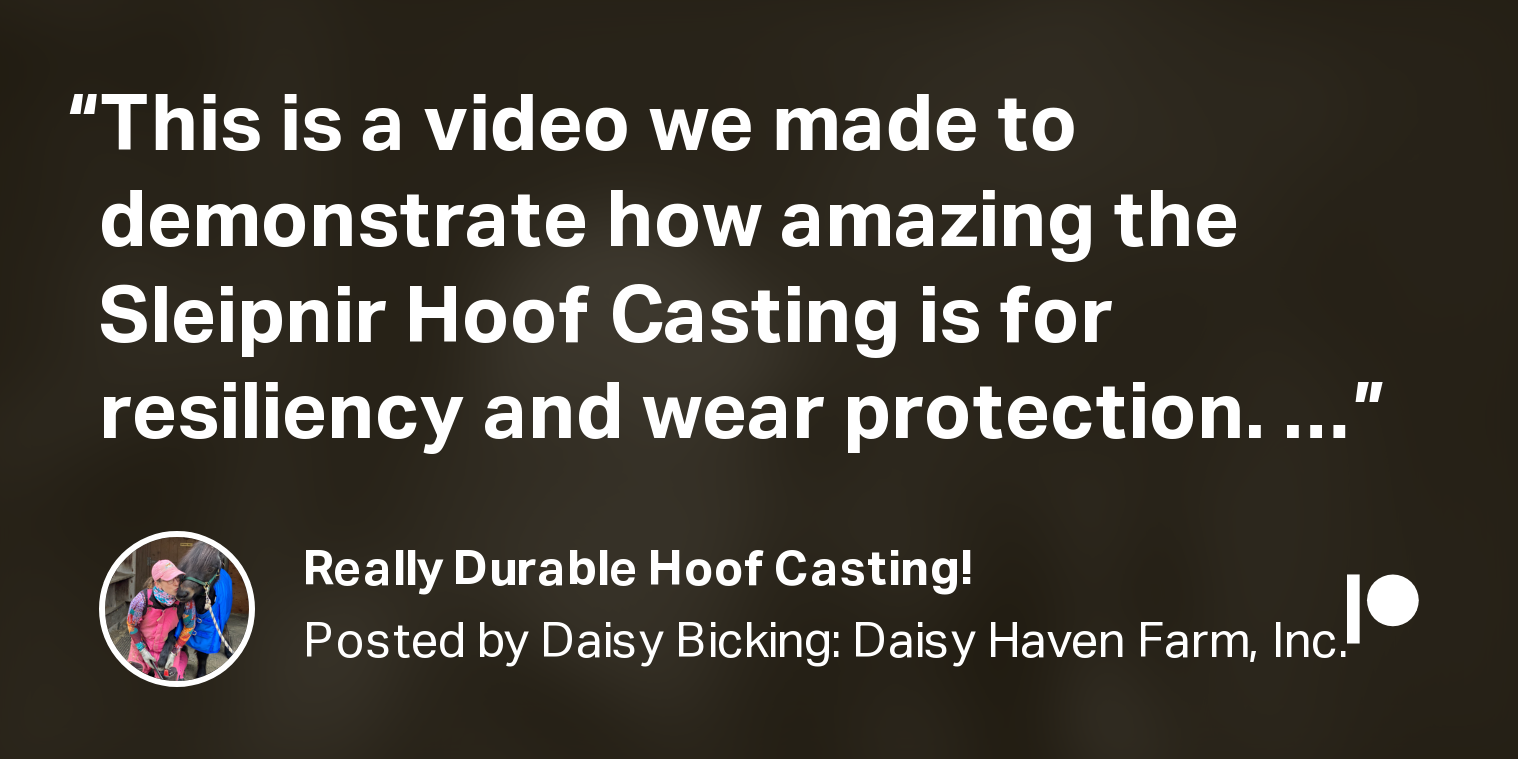 Really Durable Hoof Casting! Posted on 31 March 2022 This is a video we made to demonstrate how amazing the Sleipnir Hoof Casting is for resiliency and wear protection... See the whole post on Patreon.